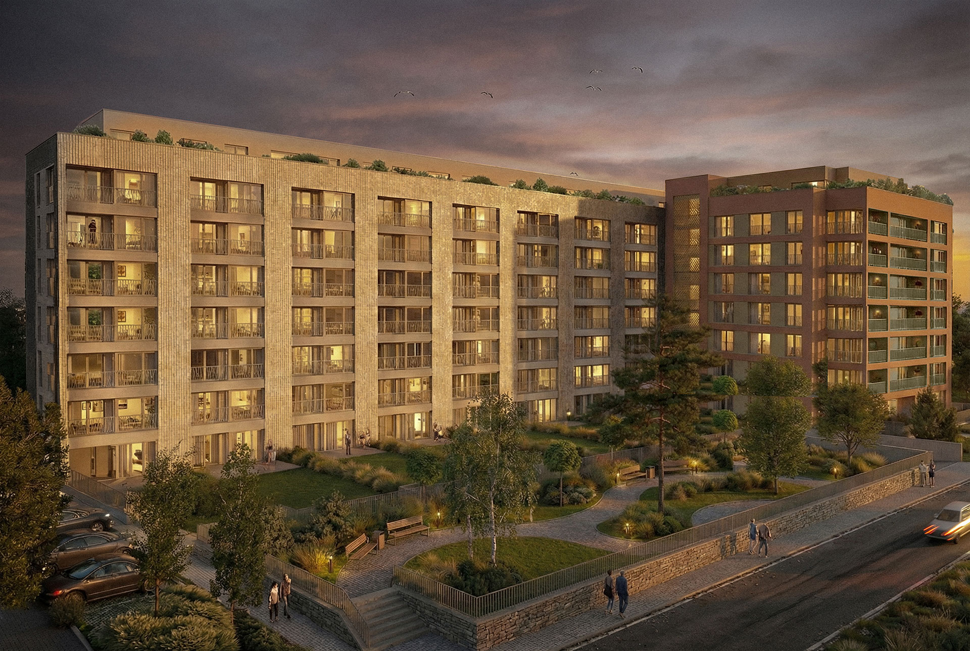 A pair of apartment buildings offering high-quality modern living for those who want to be at the heart of the action.